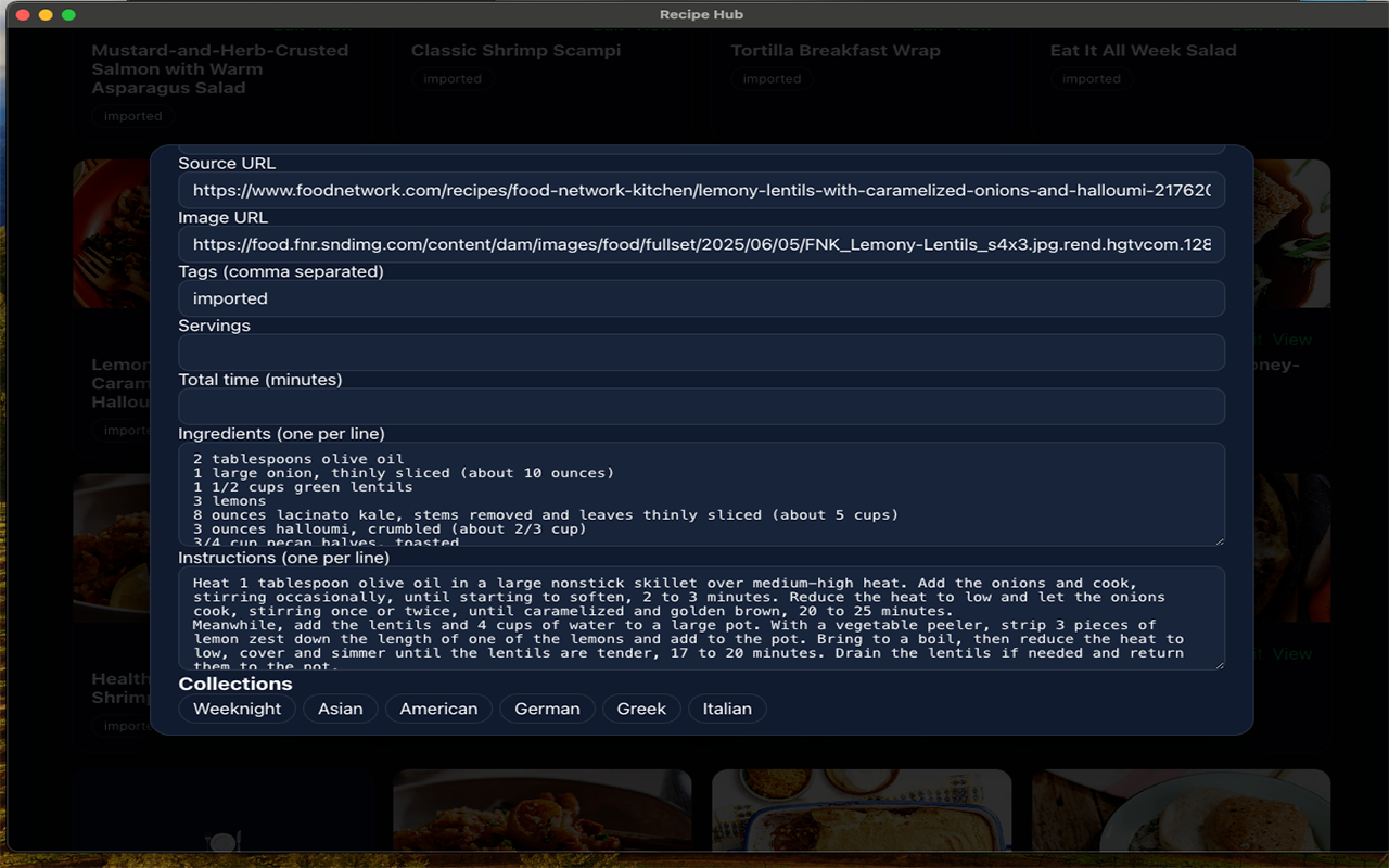 Collect recipes on your iPhone and transfer them to your Mac on your terms — no cloud, no accounts.
